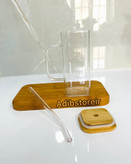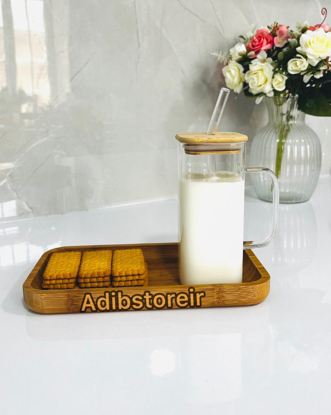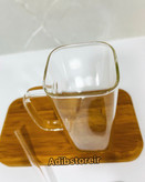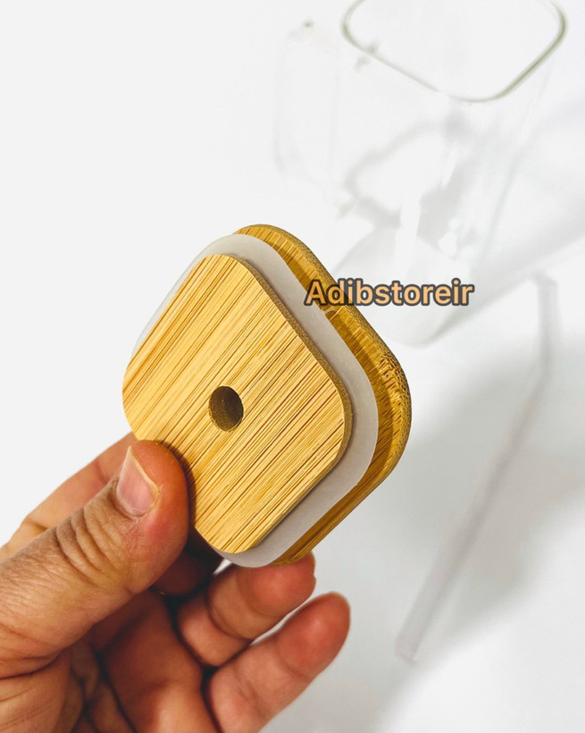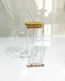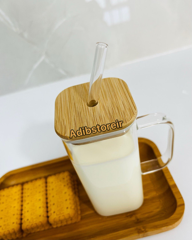 لیوان پیرکس دسته دار با درب بامبو و نی شیشهای