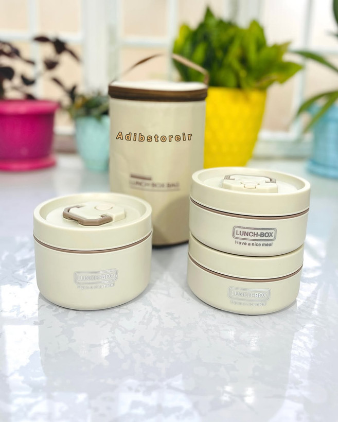 با این لانچباکس سهتایی کیفدار،همهچی مرتّب و شیک توی یه ست جمع میشه ✨
