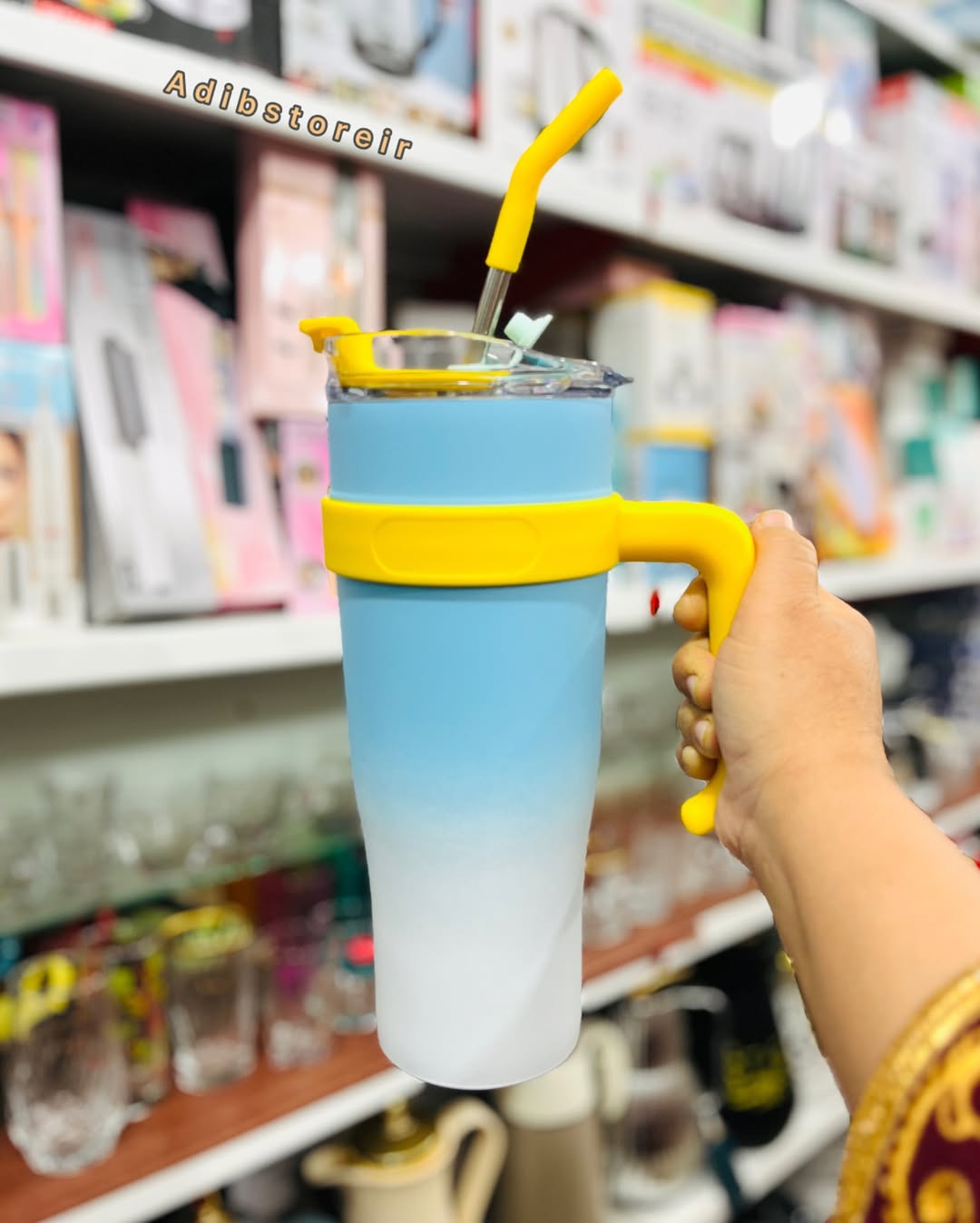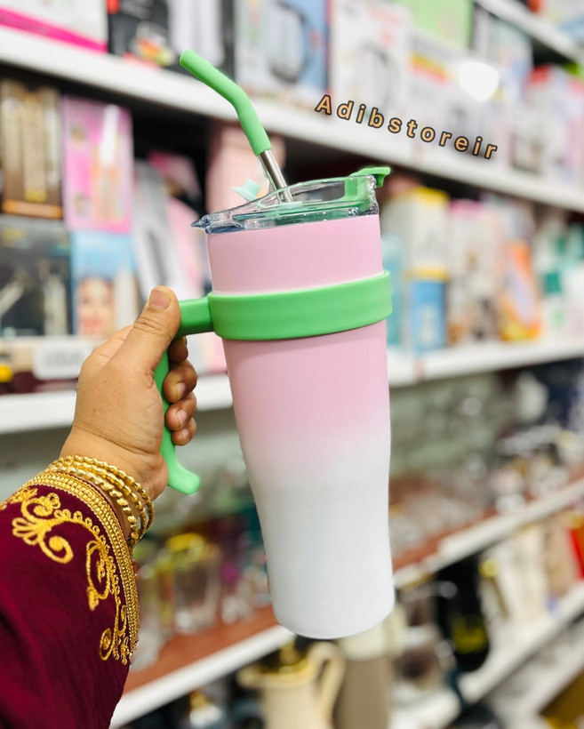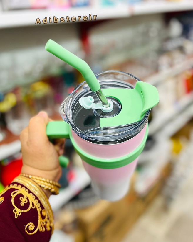 تامبلر دوجداره استیل 304 طرح استنلی نگهداری دمای نوشیدنی ها تا بیش از ۷ساعت تضمینی ضد نشت و فوقالعاده خوشدست مناسب ماشین، سفر و روزمره کیفیت بالا با ظاهر شیک و محبوب دارای درب واشردار که کاملا چفت میشه و لبی آسان نوش دارای نی استیل که سرپوش سیلیکونی داره و نی به راحتی قابل حذفه درسه رنگ جذاب آبی، سبز و صورتی حجم ۱/۱۸۰ لیتر وارداتی