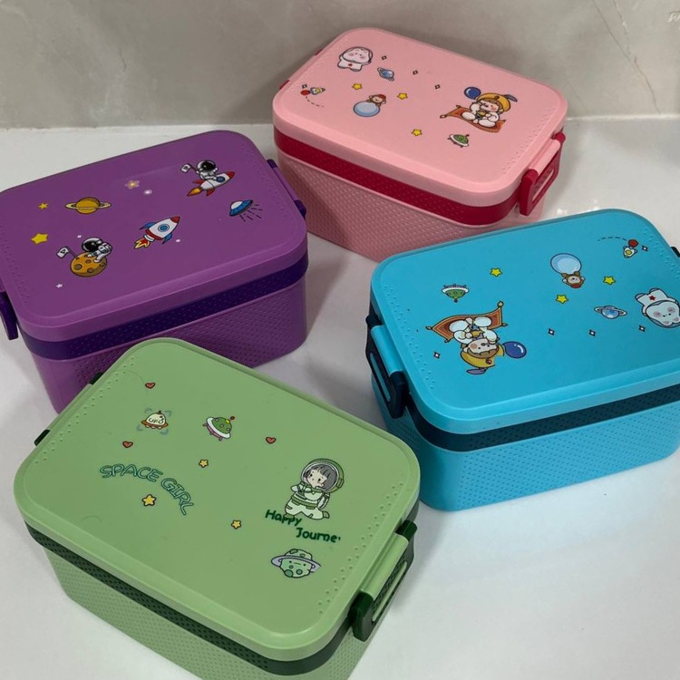 ظرف غذا دو طبقه فانتزی مدرسه ای طرح صندوق